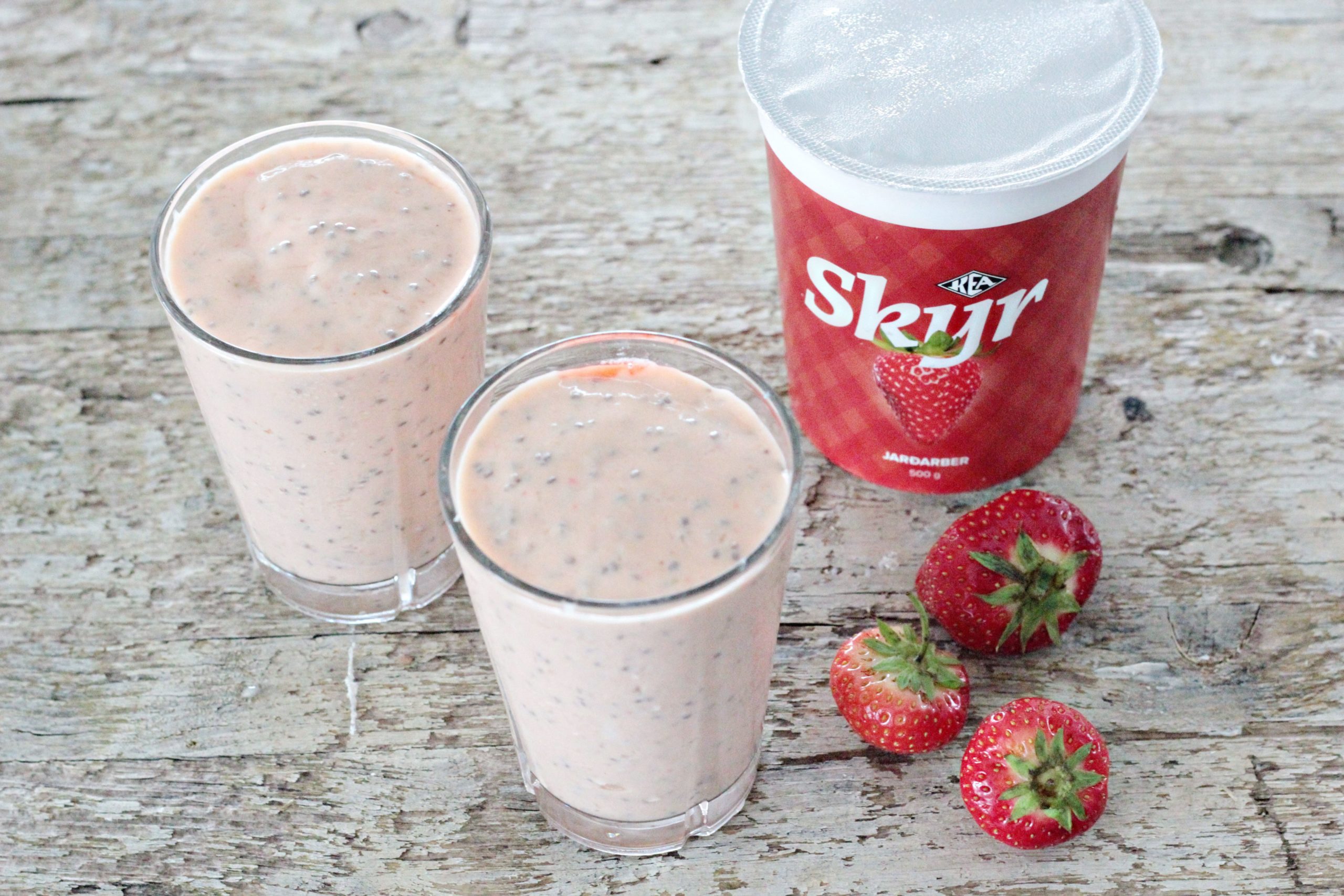 200 g KEA jarðaberjaskyr Öllu blandað saman í blandara eða matvinnsluvél þar til boostið er orðið mjúkt og slétt. Boostið geymist yfir nótt ef geymt er í kæli. Njótið.